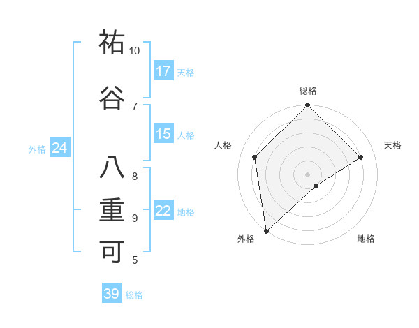 祐谷 八重可さんの外格は24画の5点!