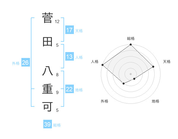 菅田 八重可さんを姓名の画数から五運を鑑定