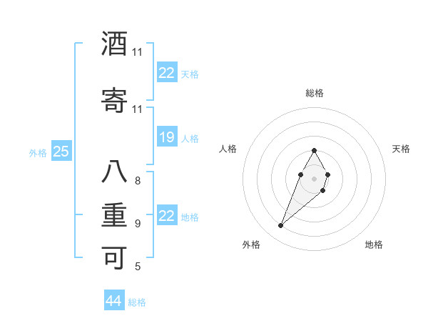 酒寄 八重可さんを姓名の画数から五運を鑑定