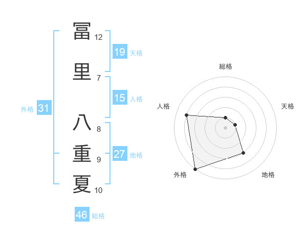 冨里 八重夏さんを姓名の画数から五運を鑑定