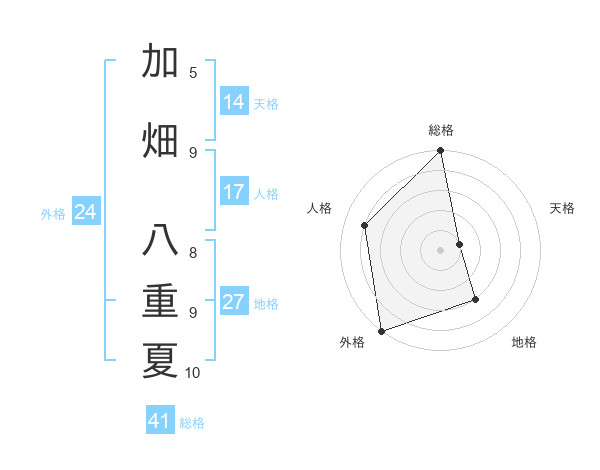 加畑 八重夏さんを姓名の画数から五運を鑑定