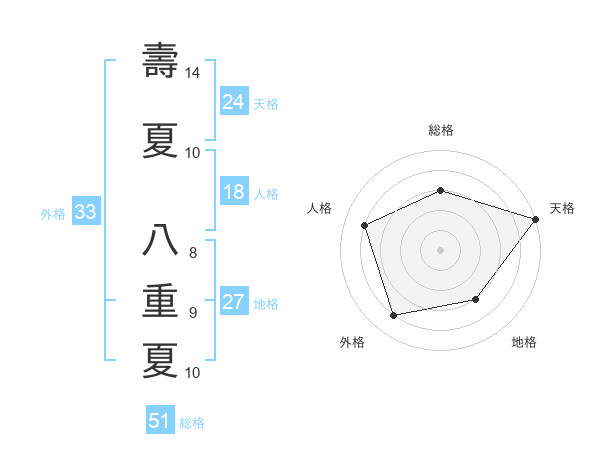 壽夏 八重夏さんを姓名の画数から五運を鑑定