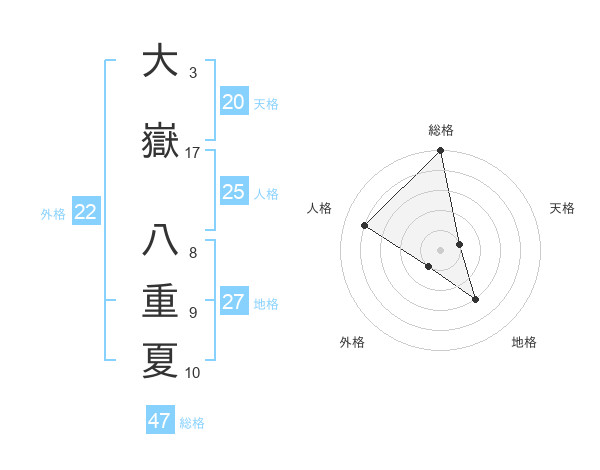 大嶽 八重夏さんの総格は47画の5点!