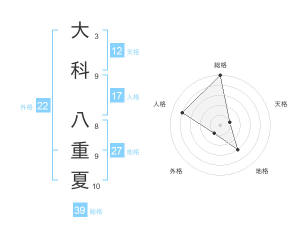 大科 八重夏さんを姓名の画数から五運を鑑定