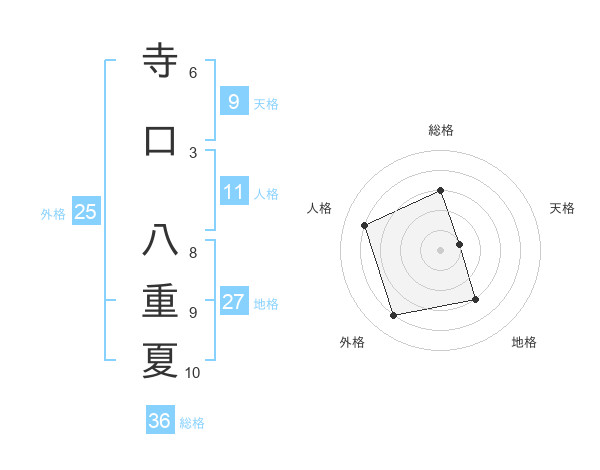 寺口 八重夏さんを姓名の画数から五運を鑑定