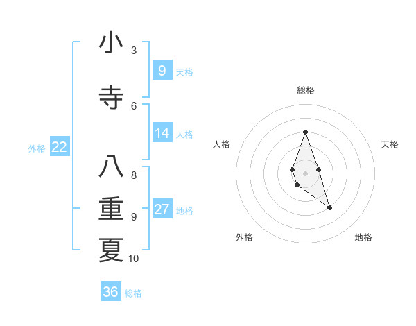 小寺 八重夏さんを姓名の画数から五運を鑑定