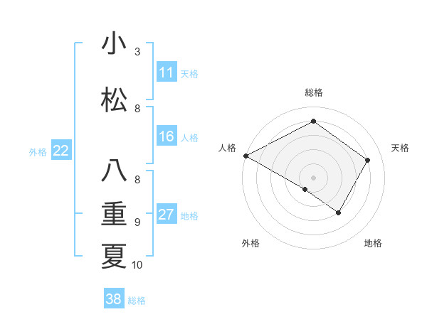 小松 八重夏さんを姓名の画数から五運を鑑定