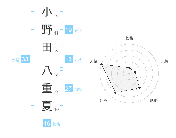 小野田 八重夏さんの外格は33画の4点!