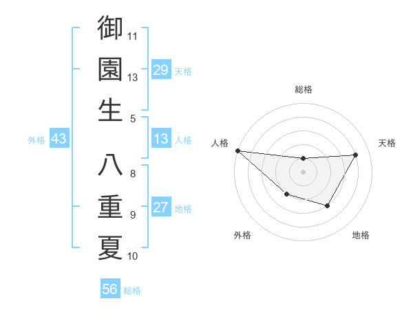御園生 八重夏さんを姓名の画数から五運を鑑定