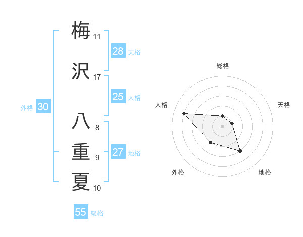 梅沢 八重夏さんの総格は55画の1点!