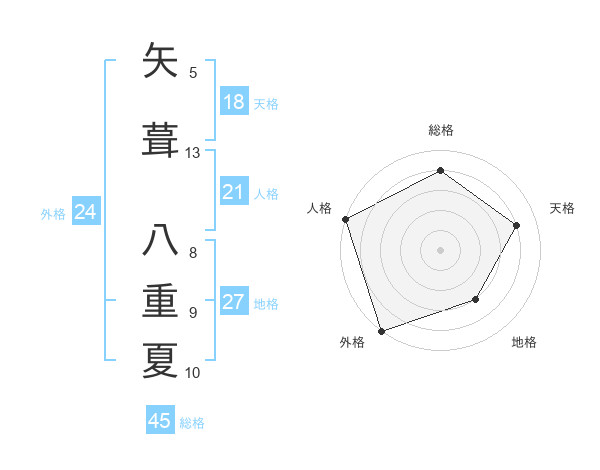 矢葺 八重夏さんを姓名の画数から五運を鑑定