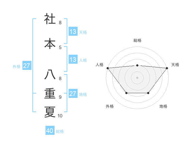 社本 八重夏さんを姓名の画数から五運を鑑定