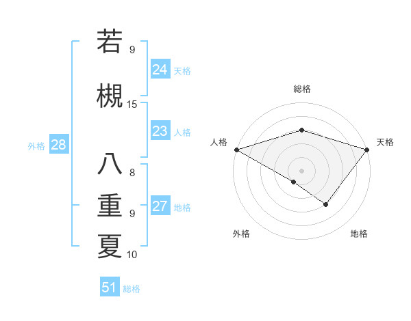 若槻 八重夏さんを姓名の画数から五運を鑑定