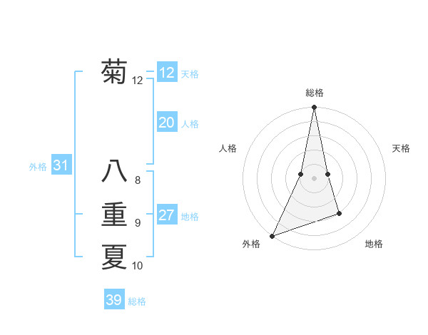 菊 八重夏さんの外格は31画の5点!