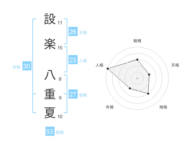 設楽 八重夏さんを姓名の画数から五運を鑑定