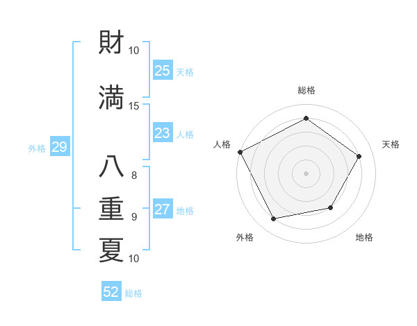 財満 八重夏さんを姓名の画数から五運を鑑定