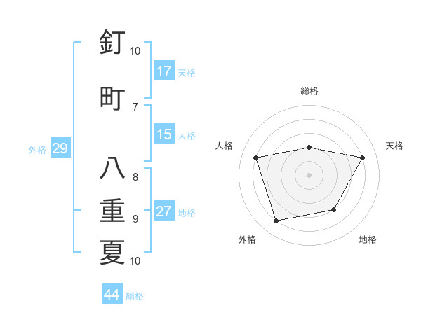 釘町 八重夏さんを姓名の画数から五運を鑑定