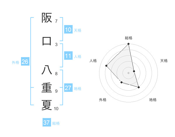 阪口 八重夏さんを姓名の画数から五運を鑑定