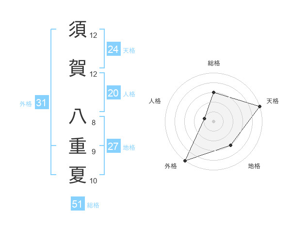 須賀 八重夏さんを姓名の画数から五運を鑑定