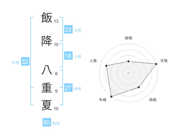 飯降 八重夏さんを姓名の画数から五運を鑑定