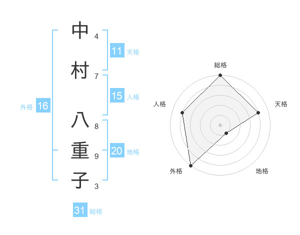 中村 八重子さんの総格は31画の5点!
