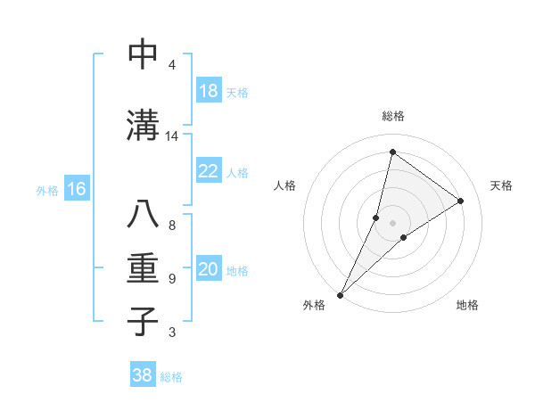 中溝 八重子さんの総格は38画の4点!