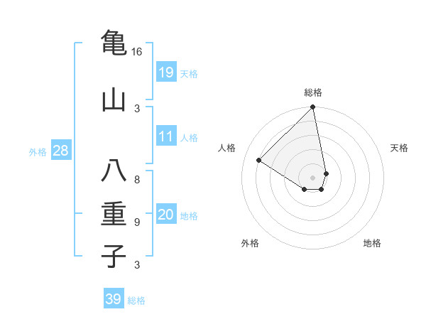 亀山 八重子さんを姓名の画数から五運を鑑定