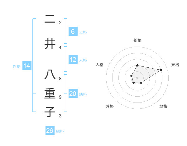 二井 八重子さんの総格は26画の2点!