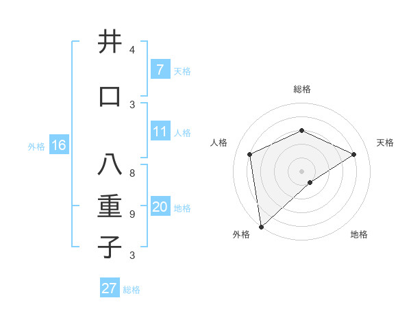 井口 八重子さんの総格は27画の3点!