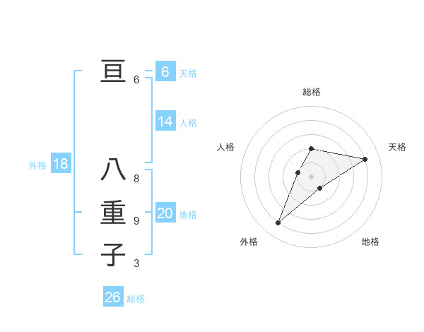 亘 八重子さんの天格は6画の4点!