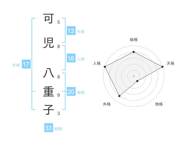 可児 八重子さんの総格は33画の4点!