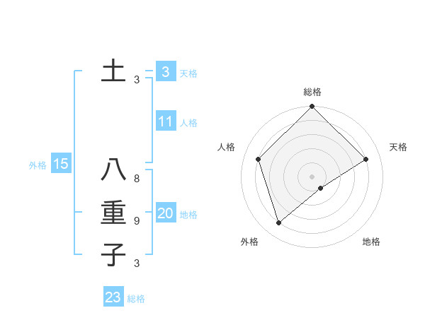 土 八重子さんの総格は23画の5点!