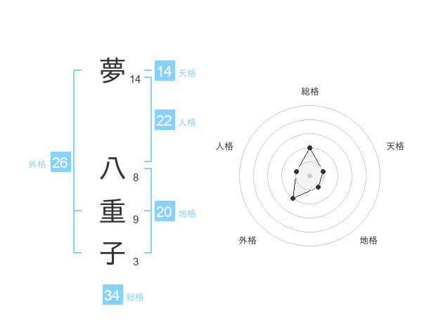 夢 八重子さんの総格は34画の2点!