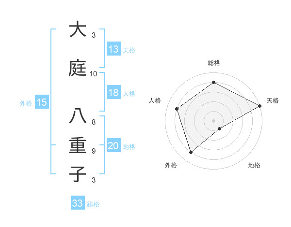 大庭 八重子さんの総格は33画の4点!