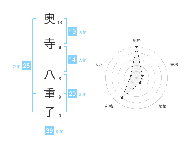 奥寺 八重子さんを姓名の画数から五運を鑑定