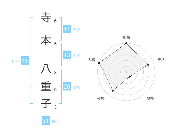 寺本 八重子さんを姓名の画数から五運を鑑定