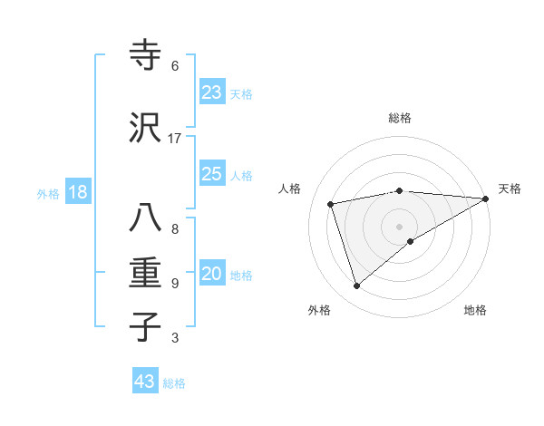 寺沢 八重子さんの天格は23画の5点!