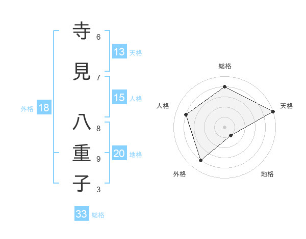 寺見 八重子さんの天格は13画の5点!