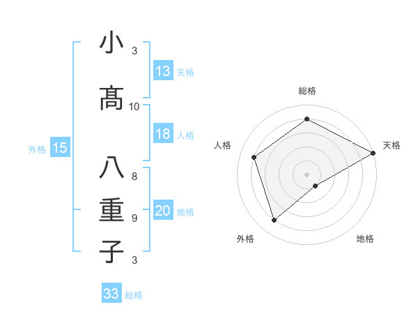 小髙 八重子さんを姓名の画数から五運を鑑定