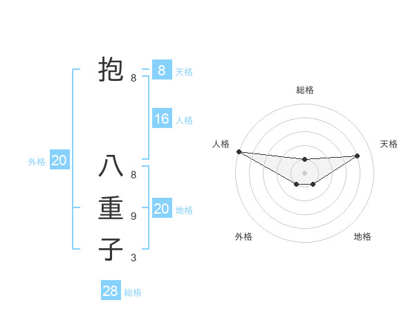 抱 八重子さんの地格は20画の1点!