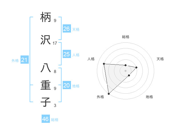 柄沢 八重子さんの外格は21画の5点!