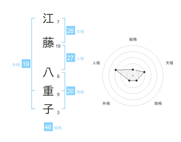 江藤 八重子さんの総格は46画の1点!
