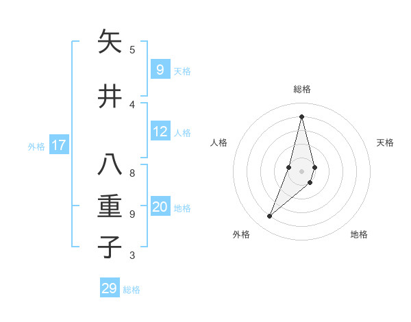 矢井 八重子さんを姓名の画数から五運を鑑定