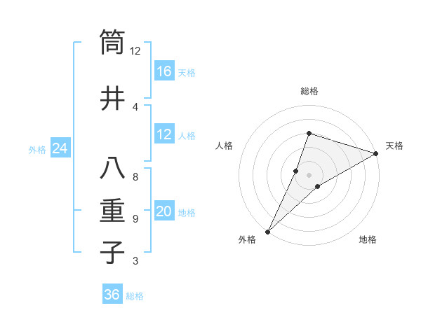 筒井 八重子さんの外格は24画の5点!