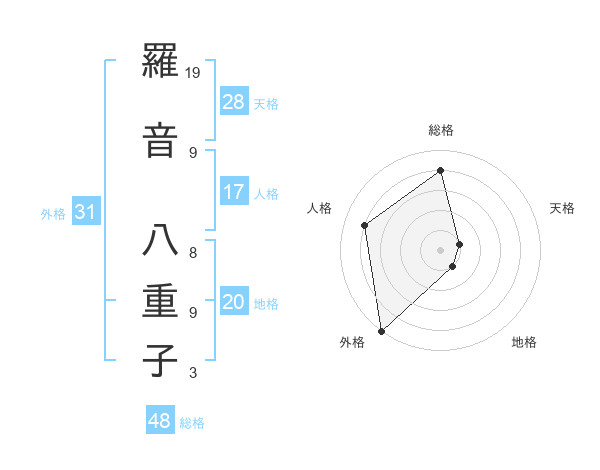 羅音 八重子さんを姓名の画数から五運を鑑定