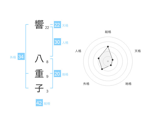 響 八重子さんの総格は42画の3点!