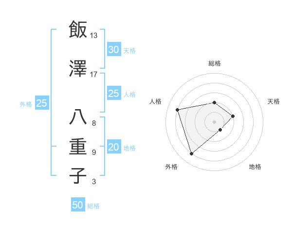 飯澤 八重子さんを姓名の画数から五運を鑑定
