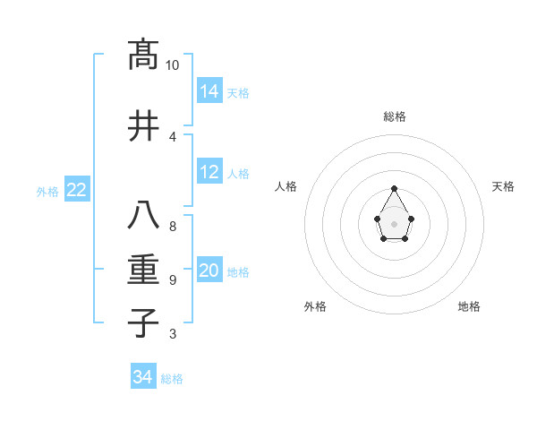 髙井 八重子さんを姓名の画数から五運を鑑定