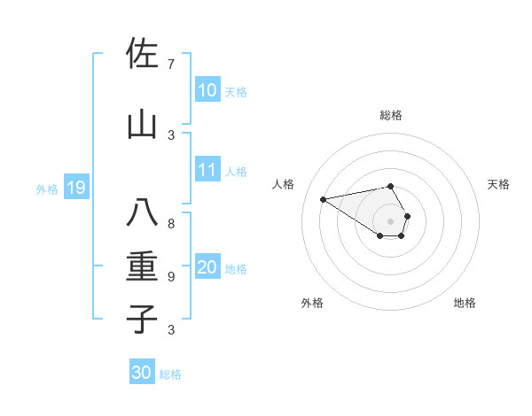 佐山 八重子さんを姓名の画数から五運を鑑定