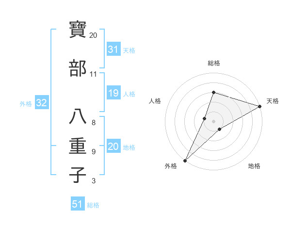 寶部 八重子さんを姓名の画数から五運を鑑定